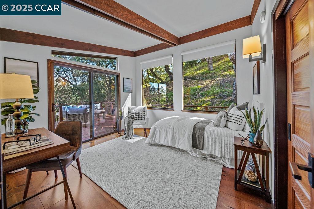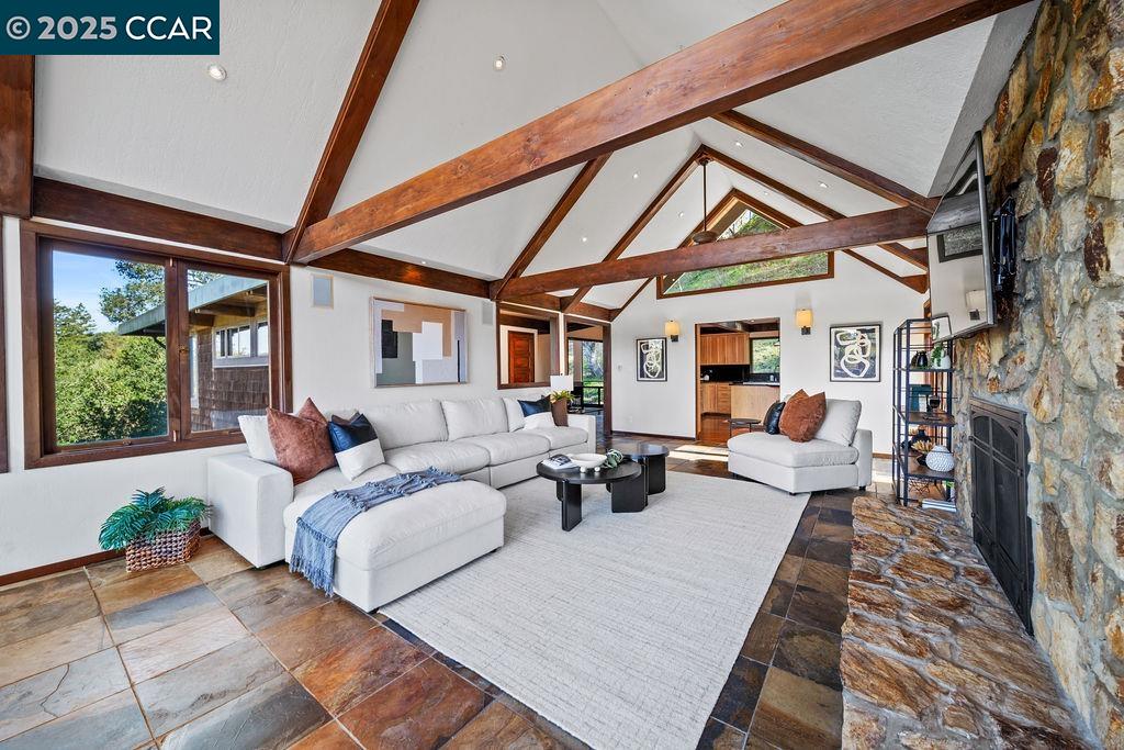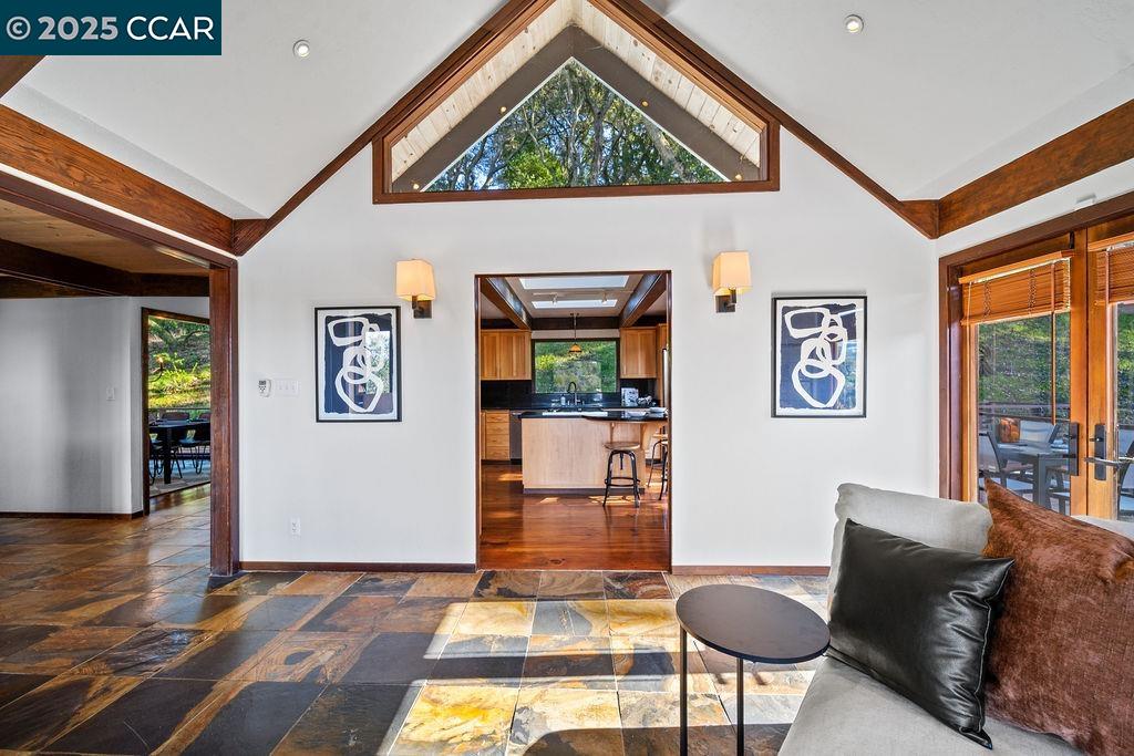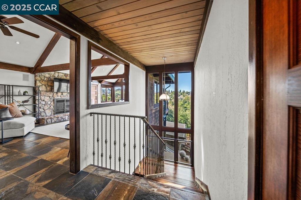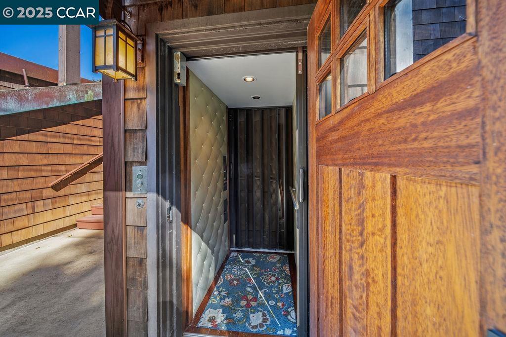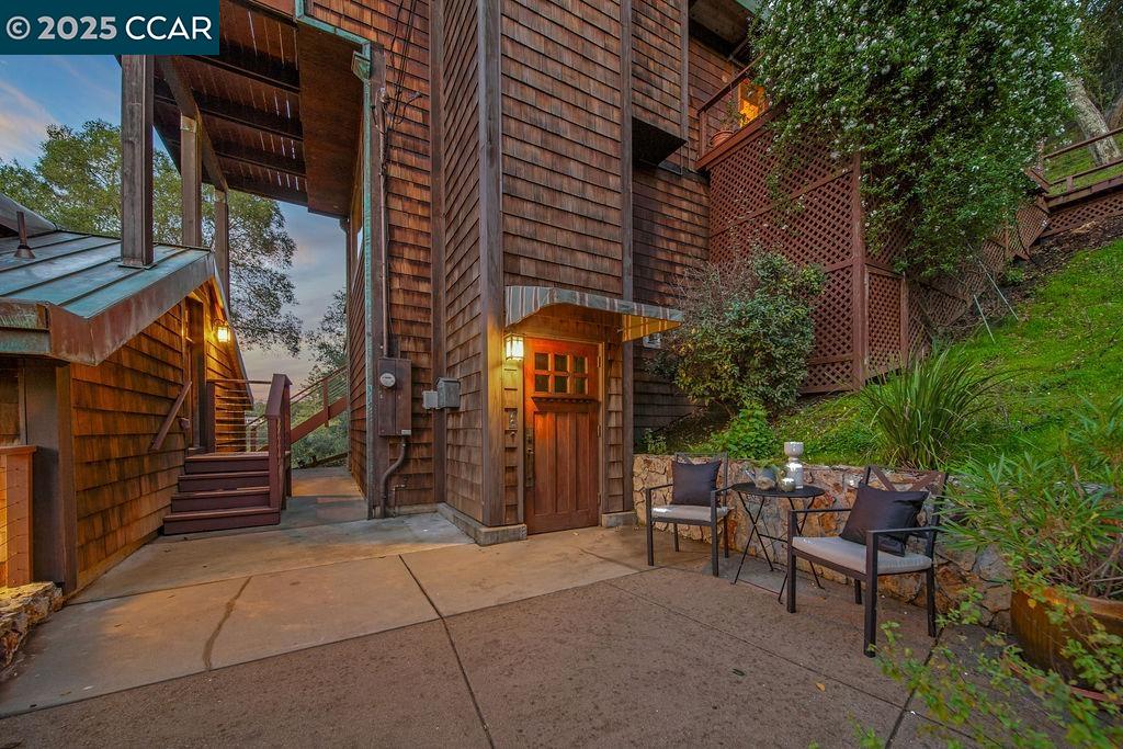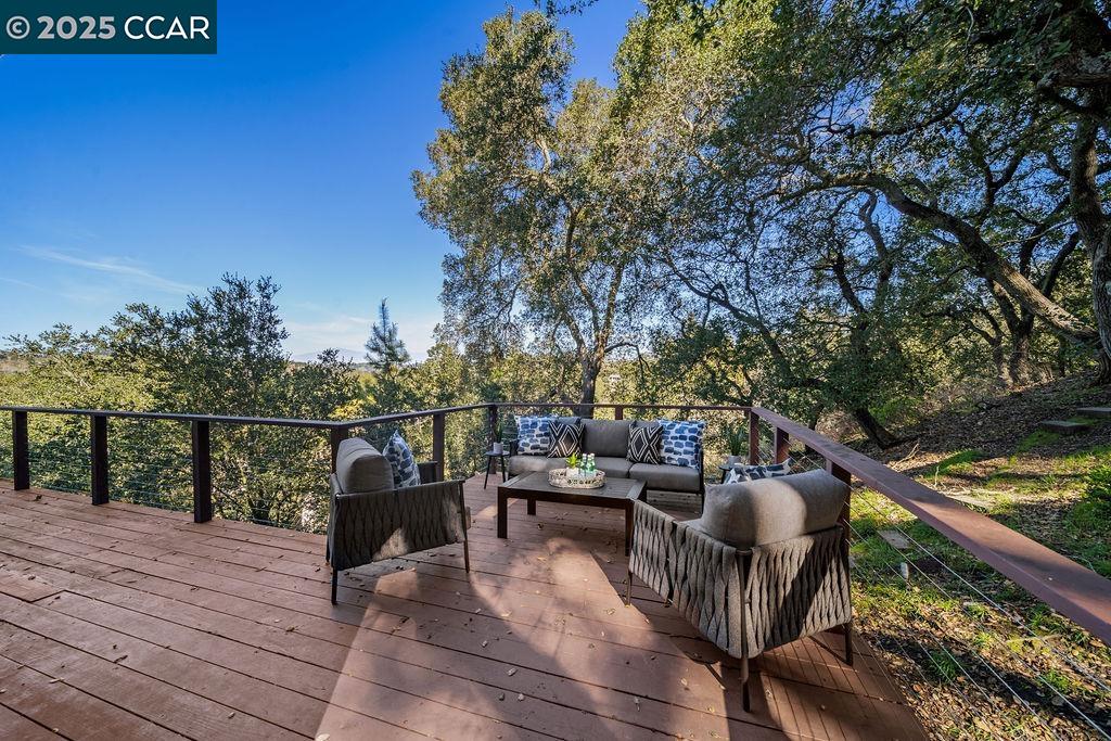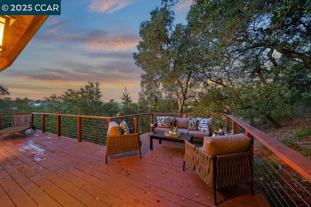Welcome to 26 Moraga Via, a gorgeous Craftsman home with breathtaking views, nestled in a private, scenic setting in Orinda, California. Built in 1968 and completely updated, the main residence offers 5 bedrooms and 5 full bathrooms across approximately 3,500 square feet. The kitchen includes granite countertops, custom alder cabinetry, stainless appliances, a large island, and French doors which access a deck which wraps around the home. Each bathroom has been meticulously updated with custom tile work. An elevator ensures easy access to the home. Copper roofing and gutters offer durability and unmatched patina. The living room includes a cozy gas fireplace, vaulted ceiling, and expansive views of the Orinda hills. The 450 sq ft ADU studio apartment with full kitchen was built in 2014 and offers space for a nanny or parent, or a rental opportunity. Located in the desirable Glorietta neighborhood, this home provides access to some of the top schools in the State. Your serene tree house packed with amenities awaits.