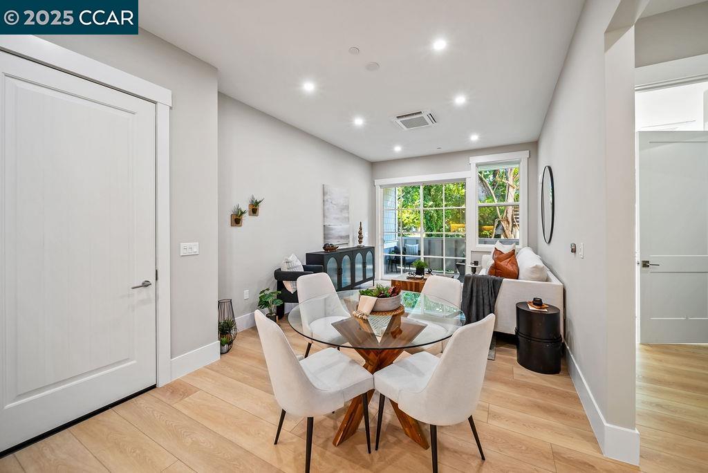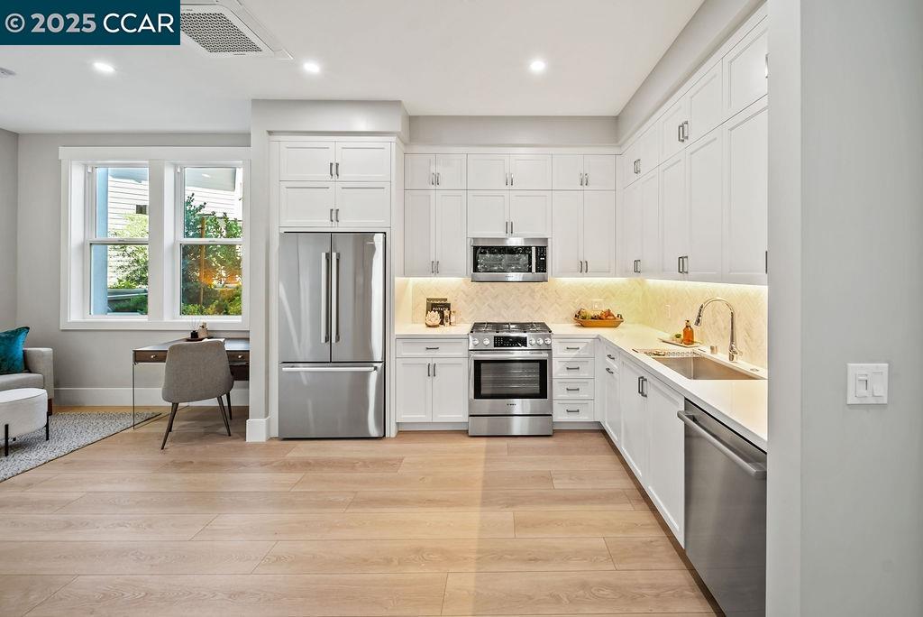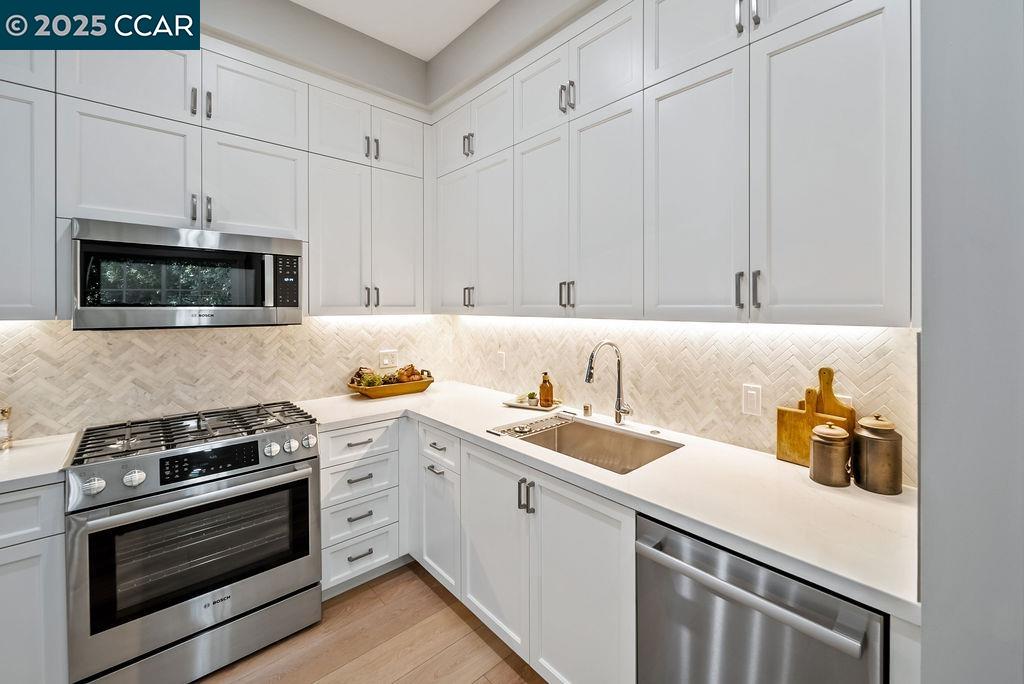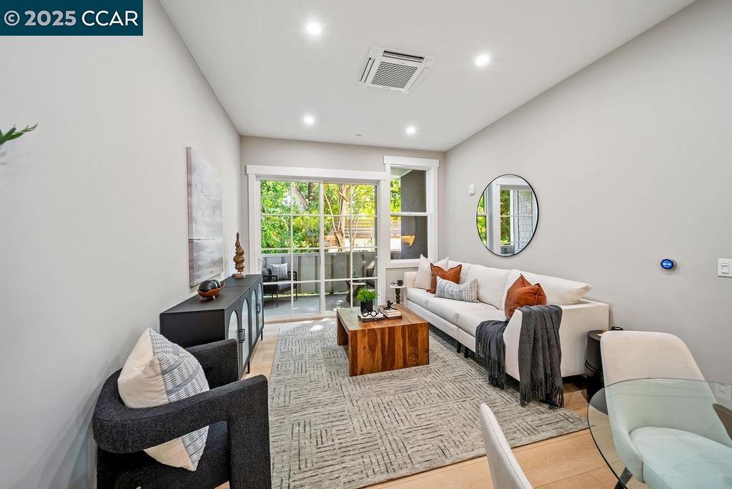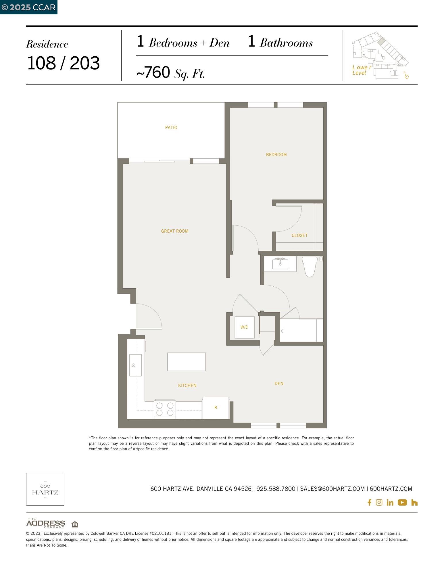600 Hartz, where classic beauty & modern elegance coalesce, nestled in the heart of downtown Danville. This new boutique building boasts a collection of 36 luxury residences in sixteen different floor plans with 1, 2, or 3 bedrooms, each designed around a lushly landscaped courtyard, offering a tranquil escape for residents. Given its prominent location, the architectural design of 600 Hartz was crafted to complement the historic charm and character of Danville. (visit the website @ 600Hartz.com). Residence #108 is a stunning, brand-new condominium that seamlessly blends timeless classic design with contemporary flair. This single-level, 760 sq. ft. residence offers 1 spacious bedroom including walk in closet, 1 beautifully appointed bathroom, and a large den, with a sleek layout that is an extremely efficient use of space. An exquisitely designed kitchen where style meets functionality. Anchored by a stunning herringbone-patterned backsplash, quartz countertops and stainless-steel appliances. This lower-level home also features a private patio with park views. Step inside to 10-foot ceilings & expansive windows, and an open floor plan. Units are equipped with a nest home thermostat.