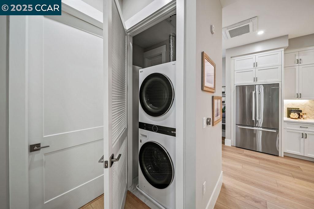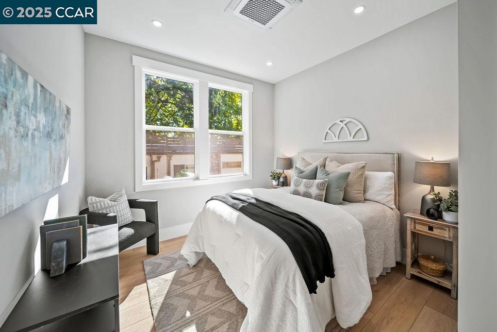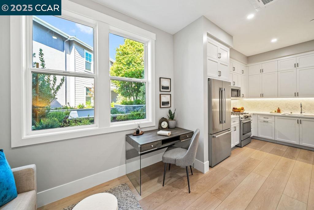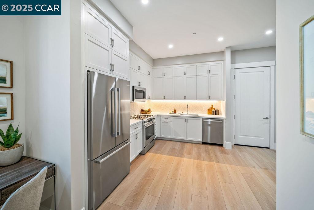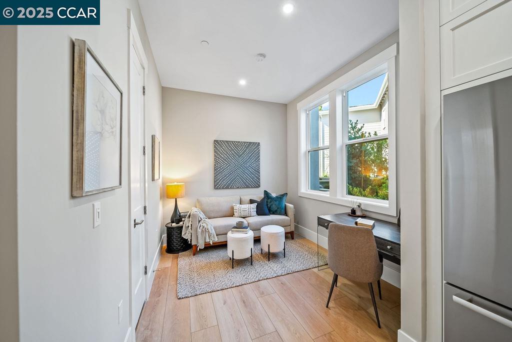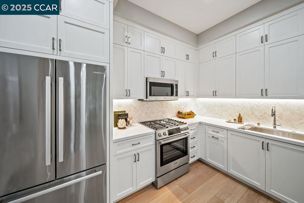 600 Hartz, where classic beauty & modern elegance coalesce, nestled in the heart of downtown Danville. This new boutique building boasts a collection of 36 luxury residences in sixteen different floor plans with 1, 2, or 3 bedrooms, each designed around a lushly landscaped courtyard, offering a tranquil escape for residents. Given its prominent location, the architectural design of 600 Hartz was crafted to complement the historic charm and character of Danville. (visit the website @ 600Hartz.com). Residence #108 is a stunning, brand-new condominium that seamlessly blends timeless classic design with contemporary flair. This single-level, 760 sq. ft. residence offers 1 spacious bedroom including walk in closet, 1 beautifully appointed bathroom, and a large den, with a sleek layout that is an extremely efficient use of space. An exquisitely designed kitchen where style meets functionality. Anchored by a stunning herringbone-patterned backsplash, quartz countertops and stainless-steel appliances. This lower-level home also features a private patio with park views. Step inside to 10-foot ceilings & expansive windows, and an open floor plan. Units are equipped with a nest home thermostat.