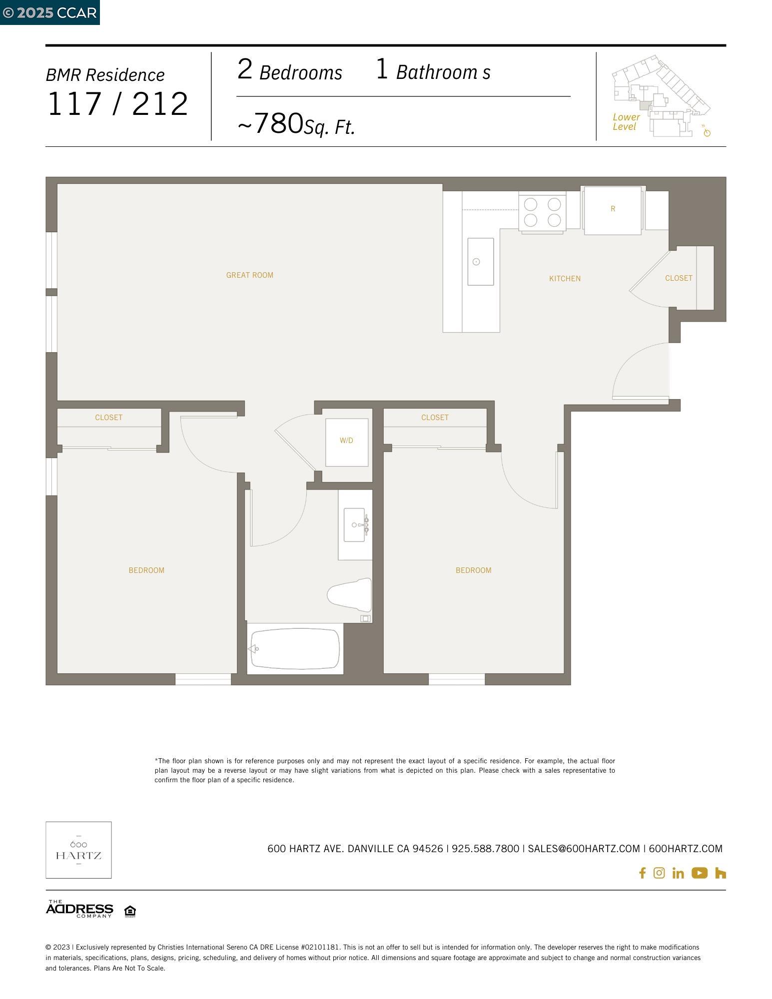 Affordable/below market rate (BMR) home, subject to income qualifications. We have two, 2-bedroom affordable homes available. This new boutique building boasts a collection of 36 luxury residences in sixteen different floor plans, each designed around a lushly landscaped courtyard, offering a tranquil escape for residents. Given its prominent location, the architectural design of 600 Hartz was crafted to complement the historic charm and character of Danville. (visit the website @ 600Hartz.com). This corner home is in a prime location with plenty of light. Buyer income must qualify. Please call for more details. Income maximum per year $172,600 (Based on a three-person household)