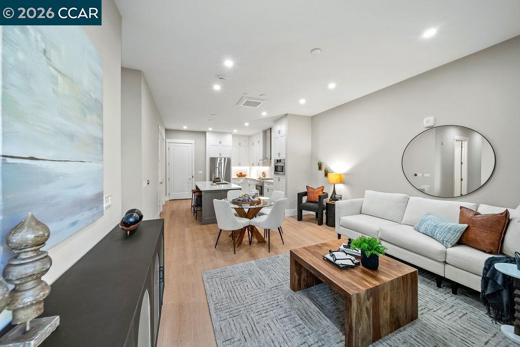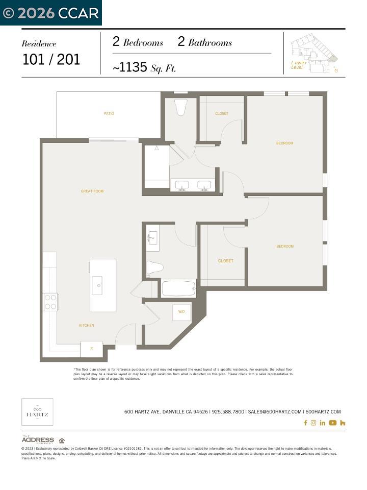 600 Hartz, where classic beauty & modern elegance coalesce, nestled in the heart of downtown Danville. This new boutique building boasts a collection of 36 luxury residences each designed around a lushly landscaped courtyard, offering a tranquil escape for residents. Given its prominent location, the architectural design of 600 Hartz was crafted to complement the historic charm and character of Danville. Discover elegance reimagined at 600 Hartz (visit the website @ 600Hartz.com). Residence #201 is a stunning, brand-new condominium that seamlessly blends timeless classic design with contemporary flair. This single level, second floor home is a corner home, with 1135 sq. ft. and offers 2 spacious bedrooms and 2 beautifully appointed bathrooms, and expansive great room, making it an ideal choice for those seeking comfort and sophistication. Step inside to 10-foot ceilings & expansive windows, with an open floor plan designed to maximize space and light. Enjoy your own private patio. This is the last single level home available.